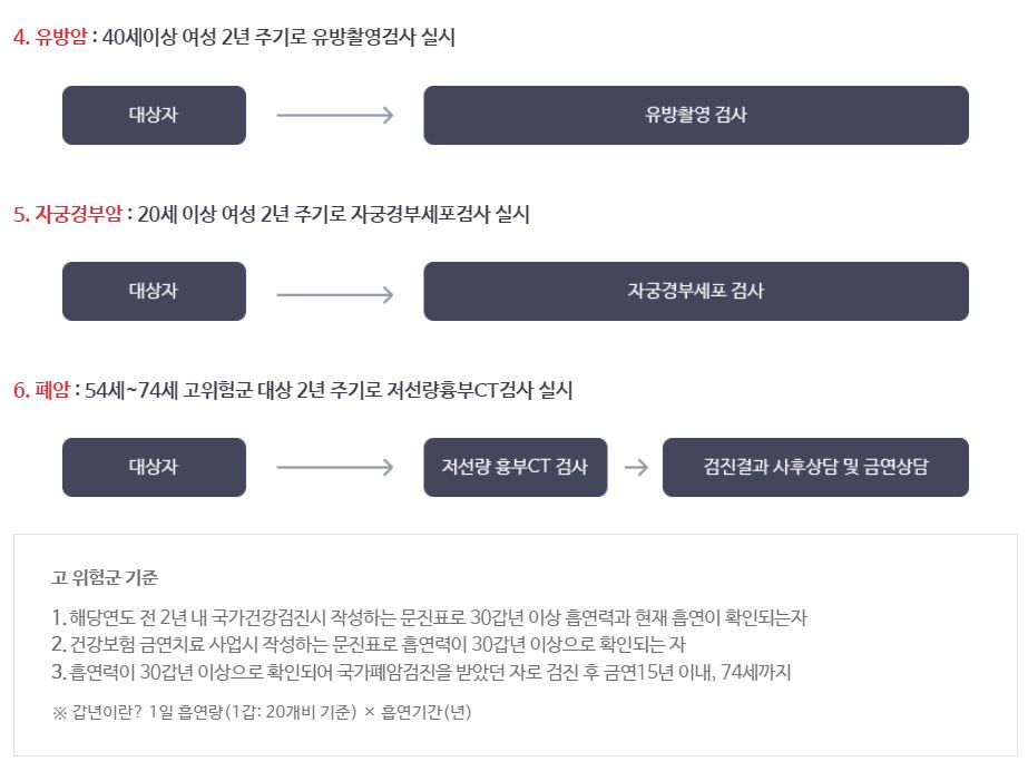 그외 좀 더 심도있는 검사는 40세이상이되면 하나씩 오픈된다.
