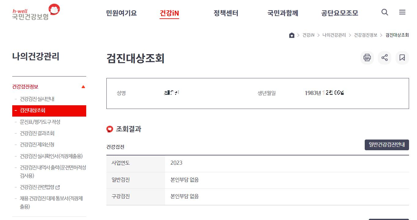 정확히는 내가 어디까지 건강보험 혜택으로 검진받을수 있는지 건강보험 홈페이지에서 확인가능하다.