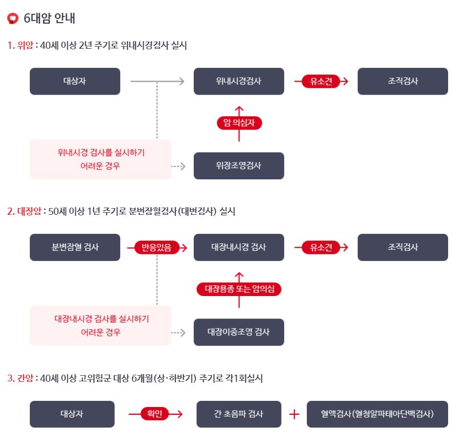 여성 40세 이상이 되니 6대암검사중 위암과 유방암 자궁경부암검사가 본인부담없이 검진가능하다.