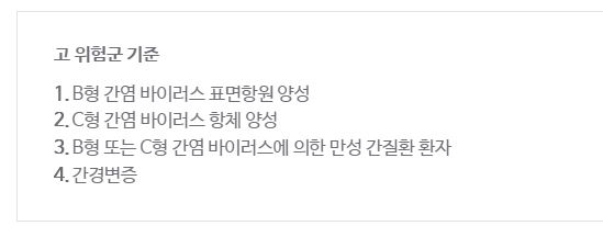 간암은 고위험군대상만 6개월에 한번씩 상,하반기에 검진가능하고