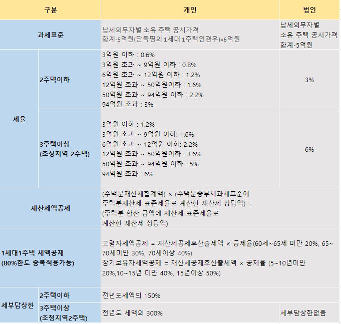 주택분 종동합부동산 세는 세대별이 아닌 개인별로 합산해 과세한다는 점도 알아두어야한다.