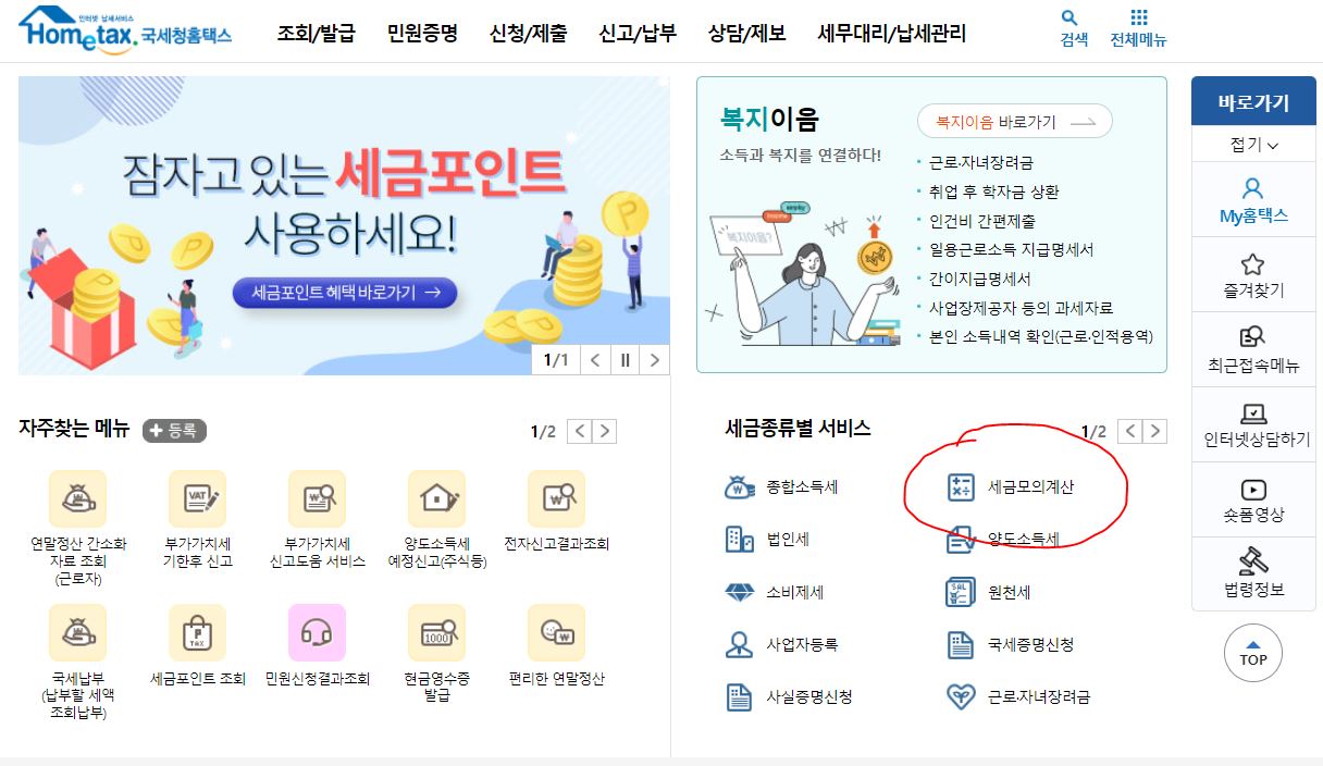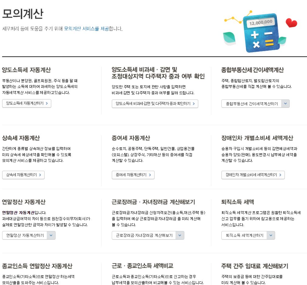 다소 복잡한 종부세를 계산해 보고 싶다면 국세청홈텍스 모의계산 서비스를 이용해보자.