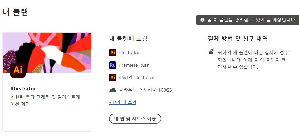 기존에 18000원 결제하고 있던 플랜이라 더 싼건 없어서 오히려 금액 업해서 새로운 플랜 24000원짜리 일러스트레이터 연간 플랜으로 갈아탐!