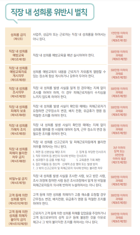 직장내 성희롱 위반시 벌칙은 어떻게 될까?