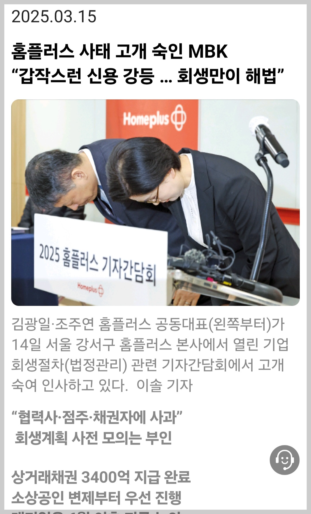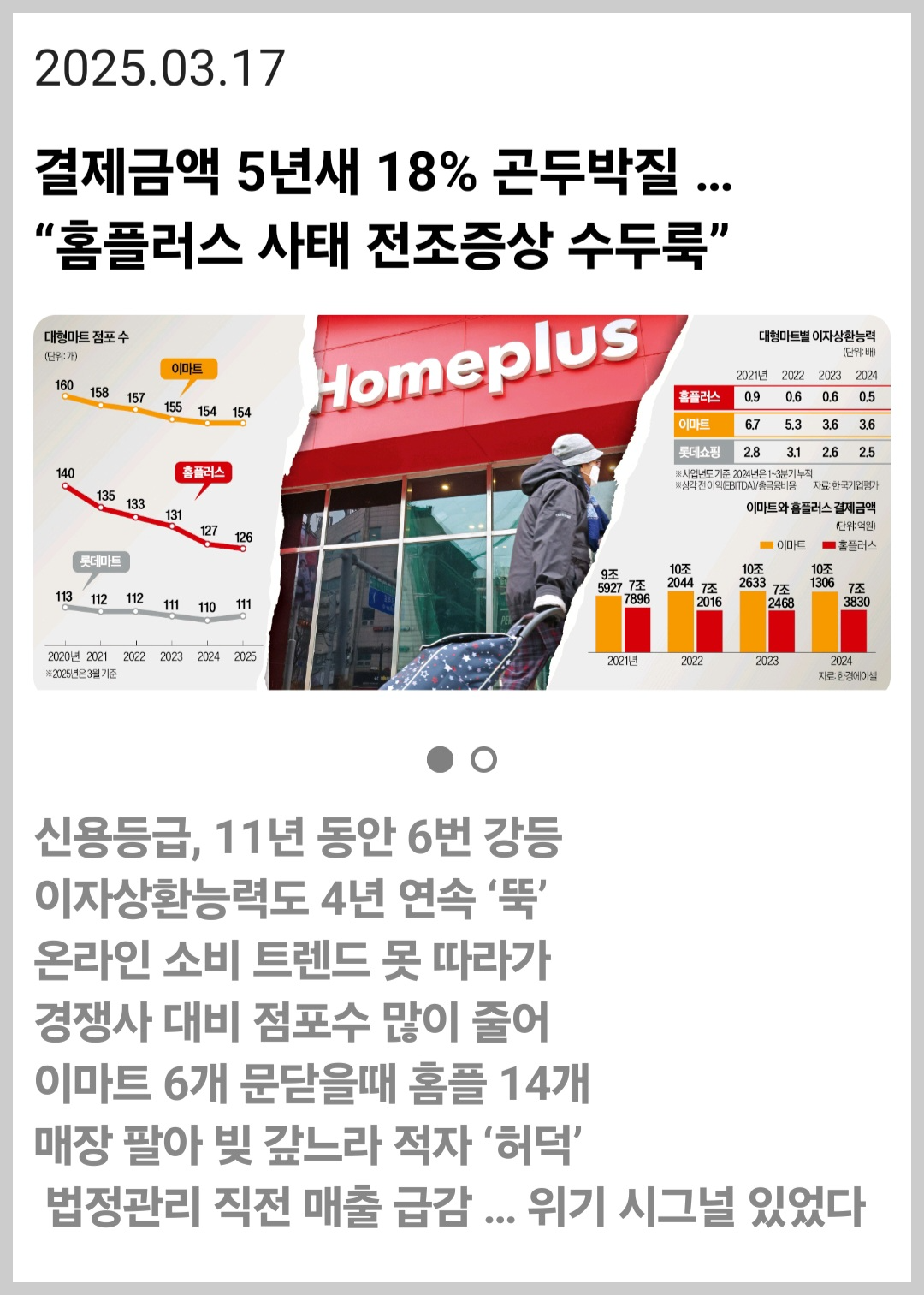 홈플러스 뉴스를 접하고 요약해 보았다.